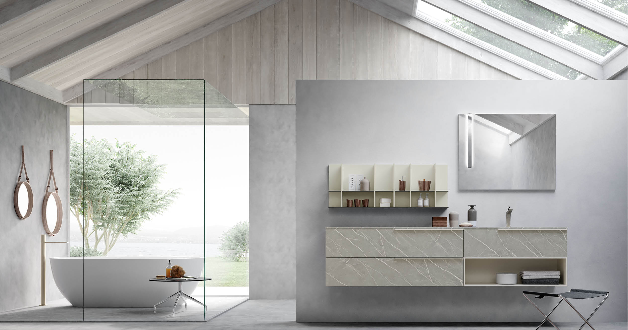 Un esempio? Abbina un pavimento in pietra grezza a mobili in legno con venature a vista e completa con una vasca freestanding bianco ottico in ceramica o doccia con soffione a pioggia.