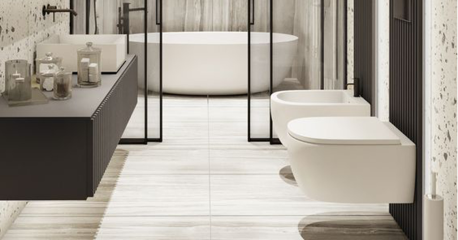 Un palcoscenico per il design: i sanitari sospesi si trasformano in veri e propri elementi di design, capaci di definire lo stile del vostro bagno. Linee essenziali e minimaliste per un ambiente moderno, come nell’immagine seguente.